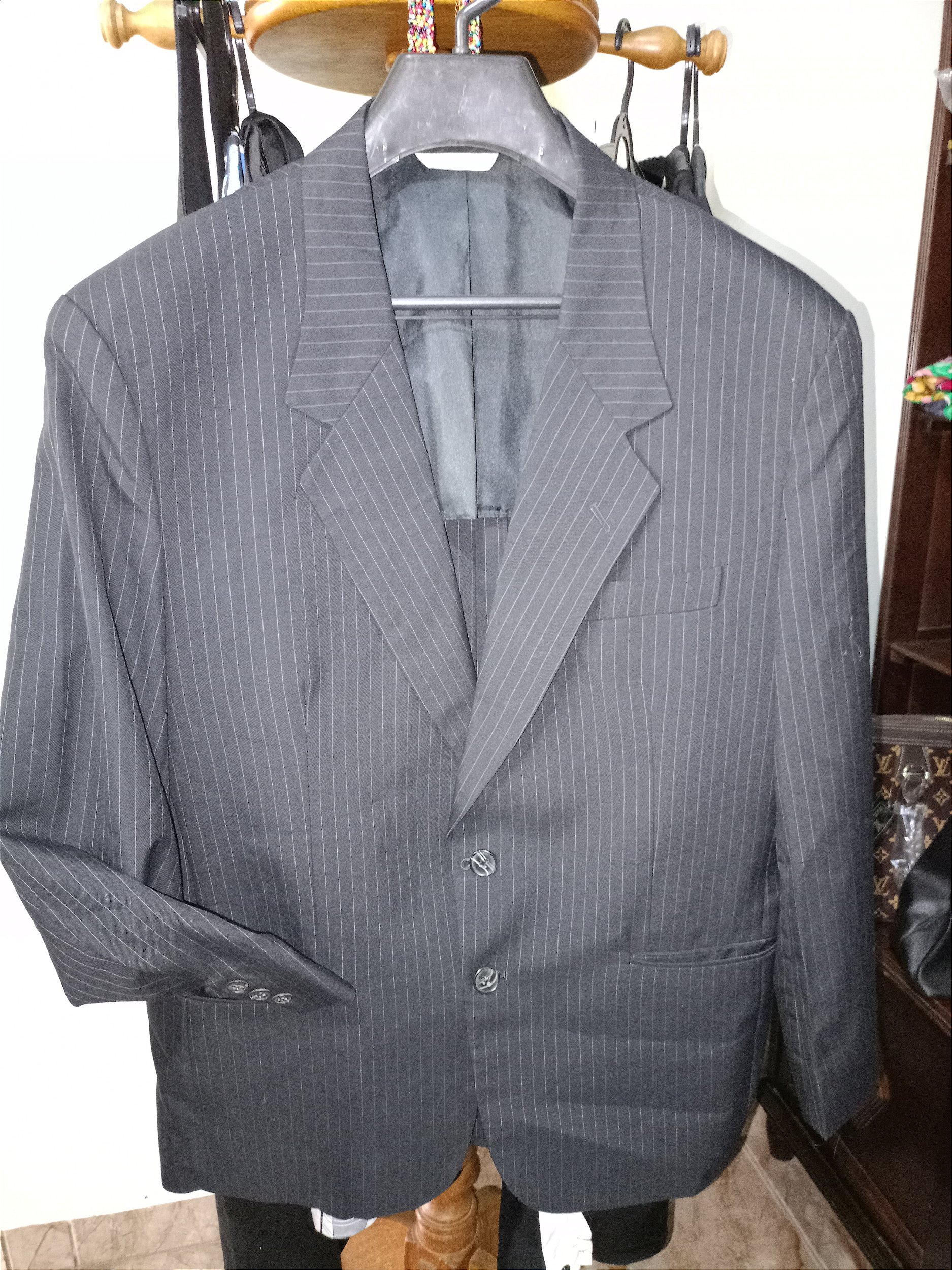 Blazer Valentino Preto Risca de Giz ( lilás ou algum tom do tipo), fabricado no Brasil, Vintage. Tamanho 52M, over feminino até 48. Impecável.